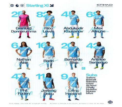 曼城首发: