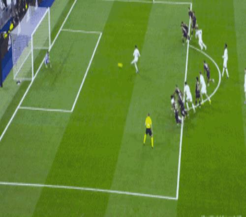 第33分钟姆巴佩接到队友后场的长传后,大禁区前沿不停球直接凌空打门,皮球又一次偏出立柱,半场比赛结束之前,莱万特在前场获得了一个位置非常好的定位球机会,巴勃罗马丁内斯直接起脚轰门,皮球擦着立柱出了底线,惊出了伯纳乌球迷一身冷汗。