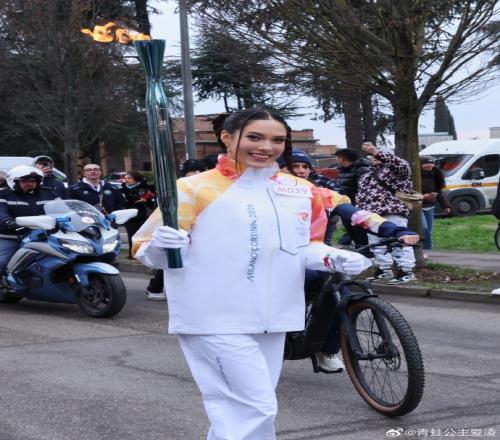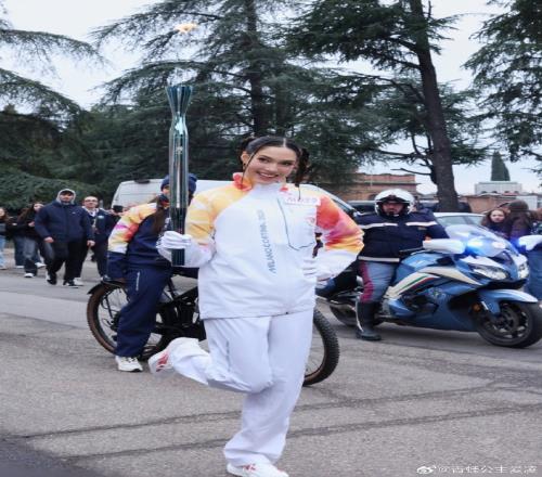 今天能在意大利维亚达纳参加奥运火炬传递、亲手传递奥运火炬,我感到无比荣幸!火炬象征着奥林匹克精神, 友谊、希望和力量。我希望在下个月的比赛中,也能将这些价值带在身上,奋力前行!