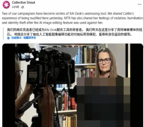 该组织创始人梅琳达·坦卡德·雷斯特表示自己感受到了的侵犯、羞辱和身份盗用的心理创伤。她在社交媒体发布长文抨击Grok,原文主要内容如下: