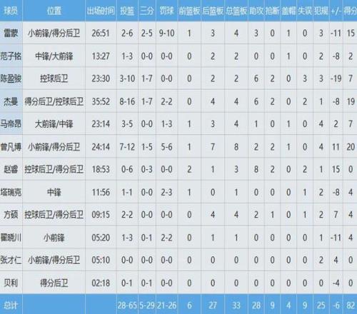 北控队那边,几名核心成员同时发威,特别邹雨宸打爆了没有周琦的北京队内线,21分15板大号两双到手,带领球队88-82拿下同城德比。