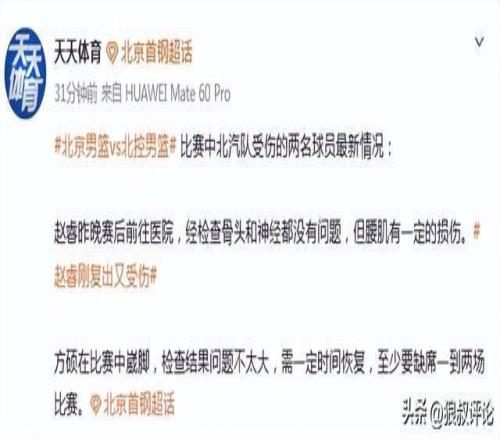 昨晚对阵北控的德比大战,赵睿最后时刻的腰伤更是让不少北京球迷惊出一身冷汗。作为北京新赛季绝对核心后卫。