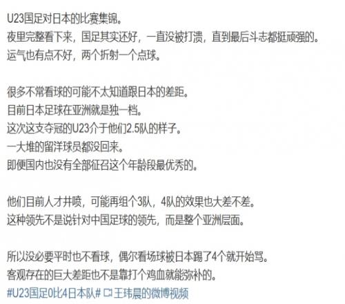 很多不常看球的可能不太知道跟日本的差距。目前日本足球在亚洲就是独一档。这次这支夺冠的U23介于他们2.5队的样子。一大堆的留洋球员都没回来。即便国内也没有全部征召这个年龄段最优秀的。