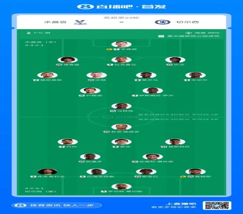 水晶宫首发:1-迪恩-亨德森、23-坎沃、2-穆尼奥斯、3-米切尔、5-拉克鲁瓦、26-理查兹、8-莱尔马、20-沃顿、7-伊斯梅拉·萨尔、11-约翰逊、14-马特塔