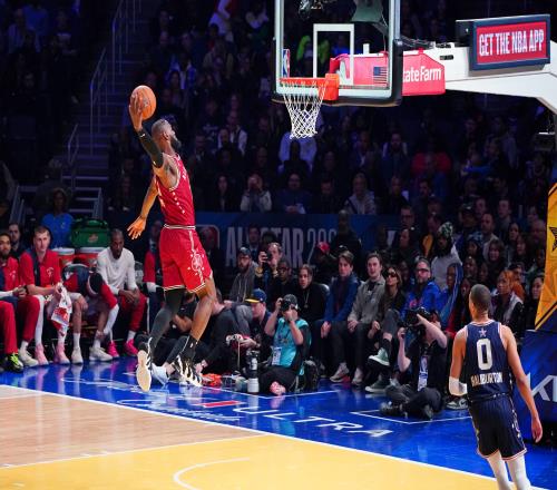 但反过来想,如果全明星赛已经不复当年之勇——事实也确实如此——那么缺少了这位堪称历史最伟大球员的参与,赛事会不会进一步失色?我们现在讨论的不是NBA最佳阵容(该阵容会选出联盟最顶尖的15名球员),而是一场由24名球员参与的表演赛,其核心目的本质上是娱乐大众——这也是联盟最新改革的原因,采用美国队对阵世界队的赛制,16名美国球员将相互对决,外加8名国际球员。在这种背景下,还有谁比勒布朗更适合担任全球品牌大使呢?