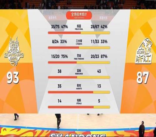 末节决战,广厦队继续保持强势追分,打得山东队有些招架不住。高诗岩一度阻挡孙铭徽吃到违体犯规。布朗连续砍分,帮助广厦队追到只差10分。好在山东男篮没有崩盘,愣是又咬住了比分。珀赛尔犯规,送孙铭徽2罚2中之后,广厦队终究还是追到了个位数。不过,就这场比赛的哨子来说,裁判还是太偏了,山东队频频被吹犯规,现场球迷不该这么温柔,毕竟这是山东队在济南的第一场比赛。最终,山东男篮主场爆冷,以93-87击败了广厦队,终结了对手的7连胜。