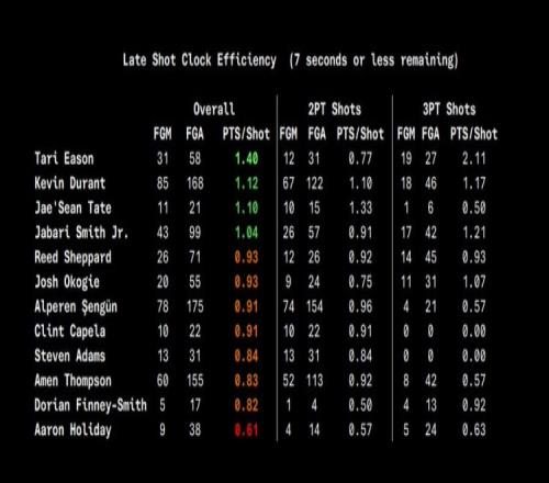 体育播报1月25日宣 火箭自媒体Steven Adams Stats分享了一个数据:火箭本赛季进攻时间剩7秒后的出手占比24%,这一比例为联盟最高。