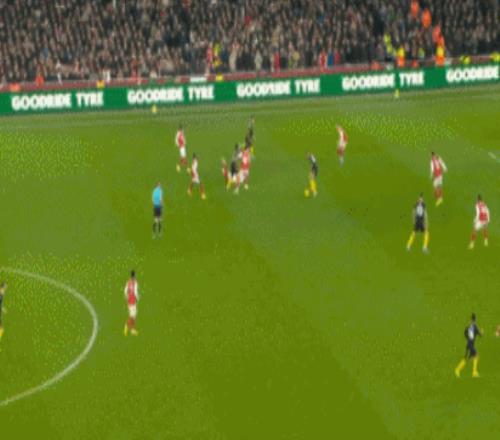 比赛开始后,主场作战的阿森纳积极组织进攻,来到第28分钟,萨卡右侧传球,厄德高跟进射门,球碰到利马身上弹入门中,1-0!