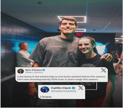 在大四这年,目前全世界最有名的女篮运动员凯特琳-克拉克也加入到爱荷华大学,她成了加尔扎的小学妹,两人让爱荷华大学知名度风靡全美,他俩作为校友也互相支持,就在昨天克拉克还在社交媒体对师兄进行鼓励,媒体报道加尔扎本赛季已成为NBA新的空间型中锋,三分命中率高达50%,克拉克转发并评论道:“我早就知道!”有看热闹不嫌事大高喊他俩在一起,实际上他俩目前都有各自对象.