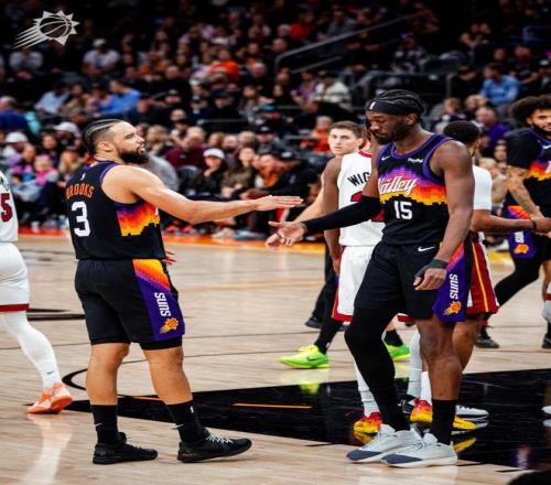 太阳这边,布克和格林上一场双双伤退,今天都无法出战,全队也只有4人得分上双。狄龙表现不俗,出战36分钟,投篮23中11,三分5中2,罚球2中2,空砍26分5篮板2助攻1抢断1盖帽。格雷森-阿伦手感欠佳,首发出场35分钟,18投4中,三分球仅11中1,罚球10中9,得到18分6篮板3助攻。