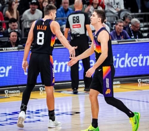 重新回到赛场之后,太阳依旧只能靠狄龙和阿伦续命,不过没有布克牵制防守,让阿伦遇到了远超以往的防守强度,虽然全场砍下了18分,但是命中率并不高,只有18投4中的发挥,尽管狄龙手感不错,23次出手命中11球,交出了26+5+2+1+2的全能数据,可惜无力带动队友,让太阳只能接受输球的结局。