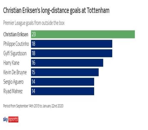 在热刺的巅峰时期,埃里克森不仅做到了这些,还展现了更多——他堪称英超联赛中最出色的创造力源泉。这样的说法看似大胆,但数据足以佐证:在热刺效力期间,这位丹麦中场的助攻数和创造机会数均位居联赛第一,同期禁区外进球数也超过了其他任何英超球员。