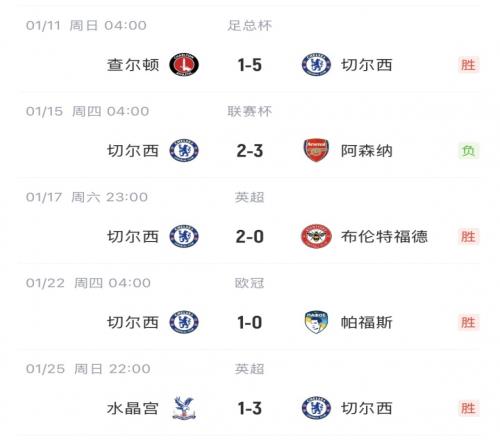 切尔西换帅后战绩