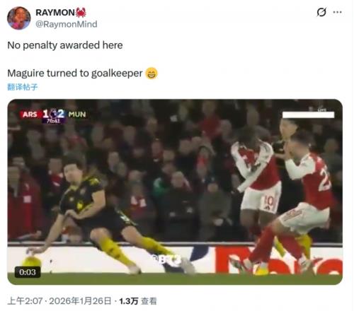 许多枪迷对没有判罚点球感到愤怒。有些枪迷在社媒表示:马奎尔成了门将;马奎尔明显手球,他的手甚至让球直接弹出场外,怎么会没判点球?