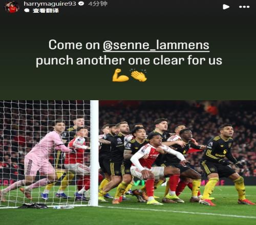 体育播报01月26日宣 本轮英超,曼联客场3-2战胜阿森纳,赛后曼联后卫马奎尔发布社媒,晒出曼联防守阿森纳角球的照片,并配文:加油拉门斯,再为我们击出一次漂亮的解围!