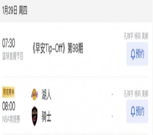 根据目前的节目信息显示,杨鸣将在1月29日与美娜、孔祥宇一同解说湖人对阵骑士的比赛。