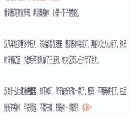 杨鸣指导还在个人社媒上致歉:最近球队的表现真心对不住球迷的支持,让大家很失望,我非常内疚和惭愧。