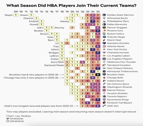 放眼整个NBA,现役球员当中比他效力一支球队更长时间的,只有库里、追梦格林、字母哥和恩比德四人而已。