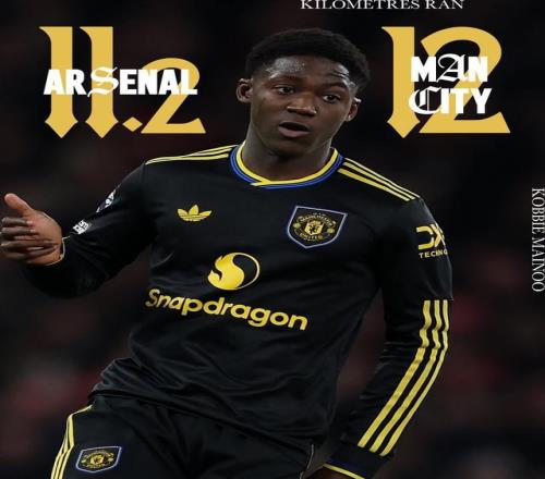 在对阵阿森纳的比赛中,梅努的跑动距离为11.2km,对阵曼城则是12km。
