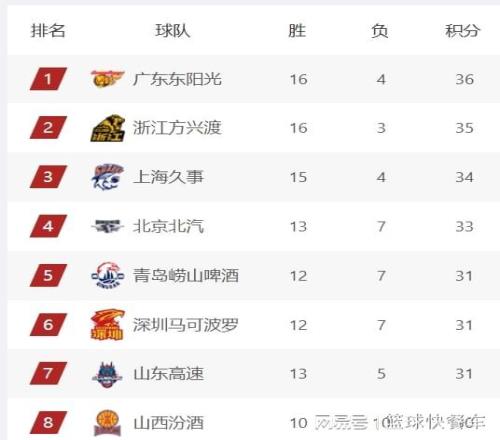 附:CBA积分榜最新排名