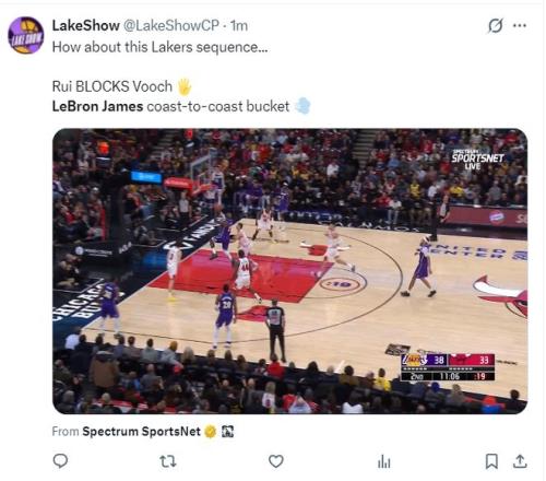 体育播报1月27日宣 湖人今日129-118击败公牛,赛后,拉拉维亚接受了媒体采访。谈到海斯一条龙胯下扣篮,拉拉维亚...