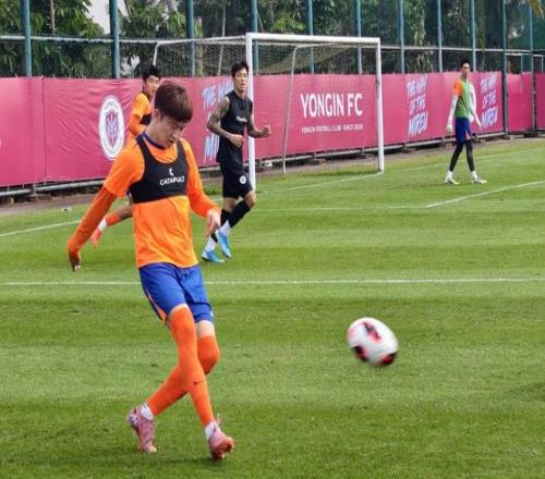 山东泰山与龙仁队进行热身赛。(泰山俱乐部供图)