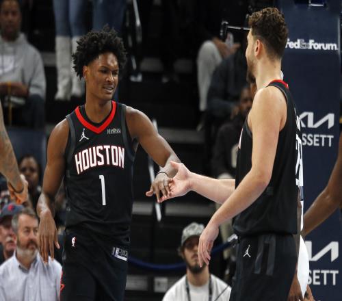 今晚火箭球员有三个值得关注的地方。一是阿尔佩伦·申京展现了统治级的内线表现。因为灰熊只能派出桑蒂·阿尔达马和小贾伦·杰克逊去对付申京。(我认为杰克逊在防守端被高估了。他有些防守表现看起来很亮眼,但在高光集锦之外,作为一名顶薪球员,他整体贡献似乎乏善可陈)。无论如何,这两个人还远远不够。申京最终砍下33分、9个篮板、6次助攻和1次抢断。他全场17投15中。他投失的其中一球是塔里·伊森在进攻时限将至时甩给他的“手雷”三分球。申京罚球4罚3中,而且在进攻端彻底统治了内线。