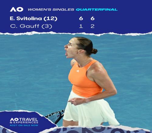 本场比赛仅耗时59分钟,斯维托丽娜生涯首次晋级澳网四强,半决赛的对手将是头号种子萨巴伦卡。