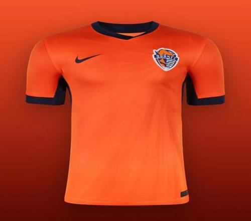 青岛海牛主场球衣通过由队徽向外延展的光影纹样呈现速度与活力。亮橙色辅以深蓝色点缀,视觉层次清晰而富有张力。