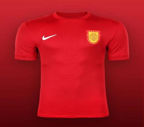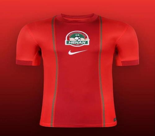 河南队主场球衣以红色为主色调,配以绿色纹理,将城市自然气息与中原铁血精神融为一体。