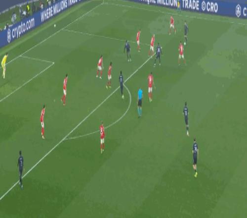 第47分钟,姆巴佩传中,维尼修斯头球偏出