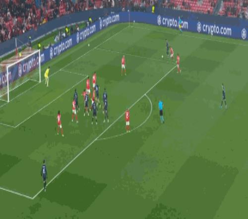 第76分钟,居莱尔劲射,本菲卡门将将球扑出
