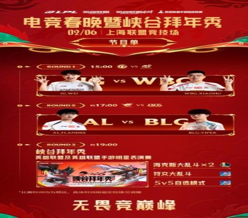 马年开团气势如虹,峡谷灯火交映春红。2026LPL电竞春晚暨峡谷拜年秀将于2月6日在上海联盟竞技场举行,节目单如下: