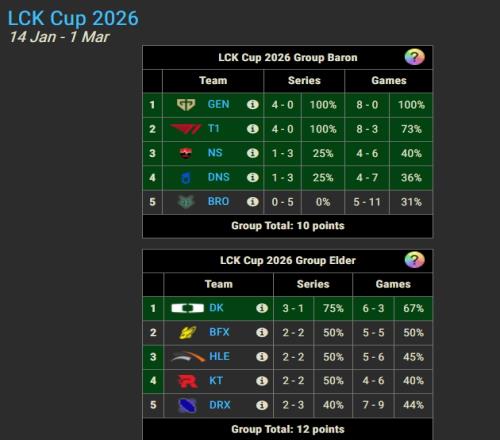 体育播报1月29日宣 昨日LCK超级周,大龙组的BRO不敌DRX,0-5结束小组赛的赛程,导致大龙组目前10分,而远古龙组已经12分。