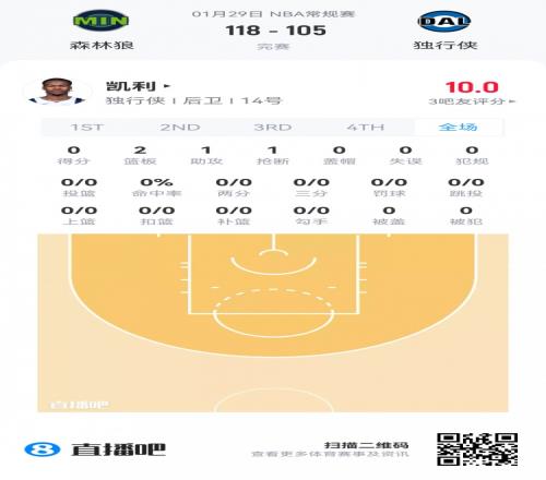 独行侠落选秀凯利 登场4分钟
