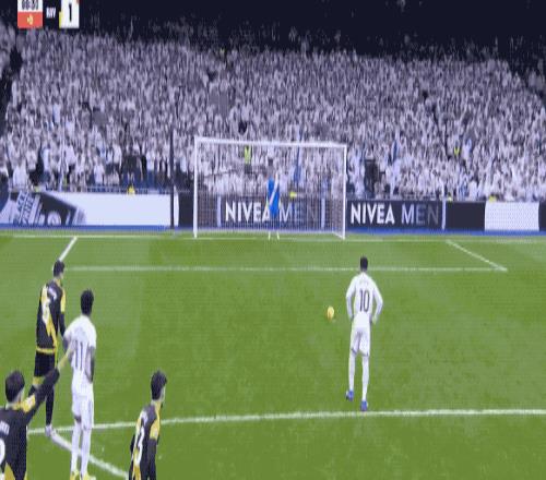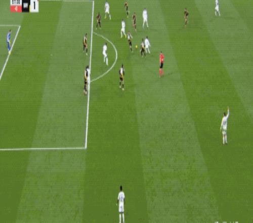 B费主罚,卡塞米罗高高跃起,力压昆卡,头槌破门。