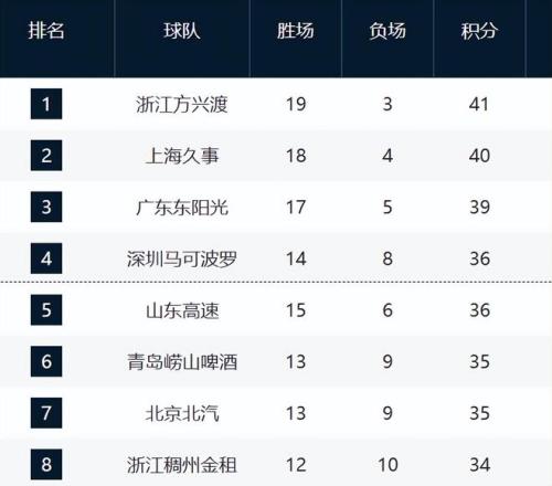 深圳和山东排在第四与第五。目前山东是少打一场比赛,但胜场比深圳多,理论上他们就是第四的排名了。当然最近这两支球队的战绩都非常好,10场全部赢了8场。